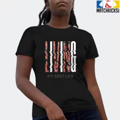 T-Shirt – Nike Dunk Low SE GS Sail Multi-Camo – Sneaker-Matching T-Shirt (LIVING MY BEST LIFE)