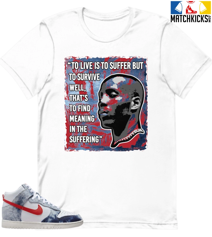T-Shirt – Nike Dunk High Washed Denim Pack – Sneaker-Matching T-Shirt (DMX Suffer Quote) is a high quality sneaker-matching T-Shirt designed to match your Nike Dunk High Washed Denim Pack sneakers. – This Tee is designed with the exact colors to match with a premium look and feel. We only use the best materials and inks to produce our merchandise. All sizes are true to size.