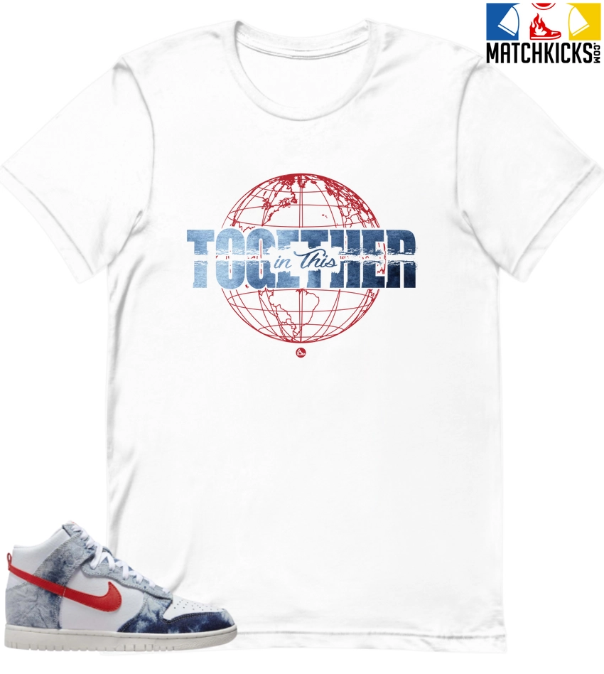 T-Shirt – Nike Dunk High Washed Denim Pack – Sneaker-Matching T-Shirt (in this TOGETHER) is a high quality sneaker-matching T-Shirt designed to match your Nike Dunk High Washed Denim Pack sneakers. – This Tee is designed with the exact colors to match with a premium look and feel. We only use the best materials and inks to produce our merchandise. All sizes are true to size.