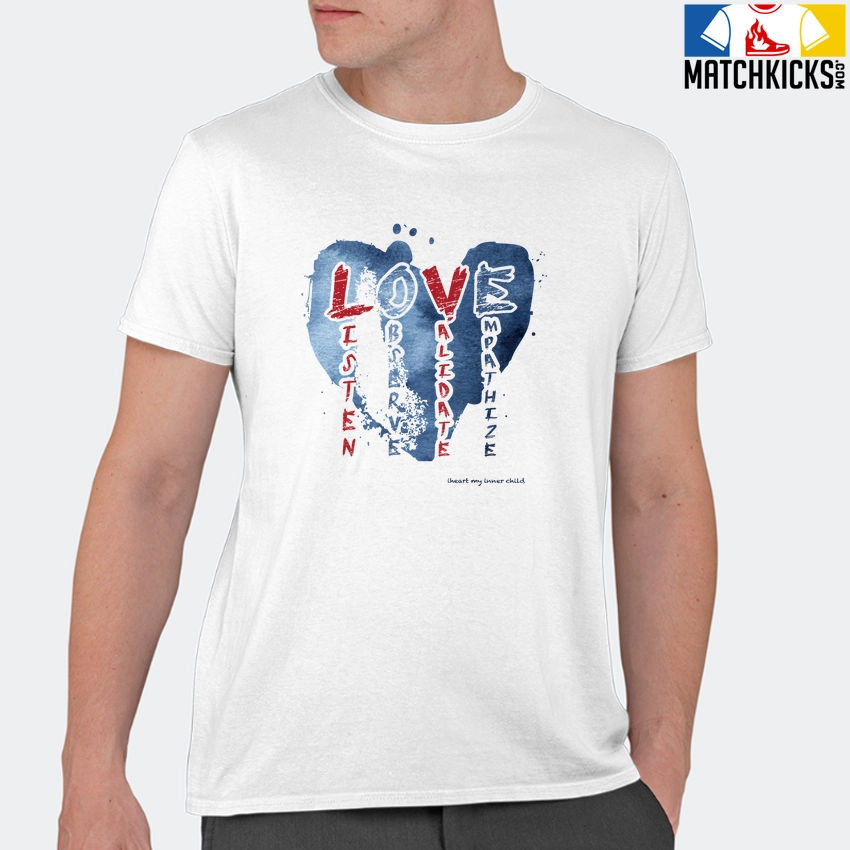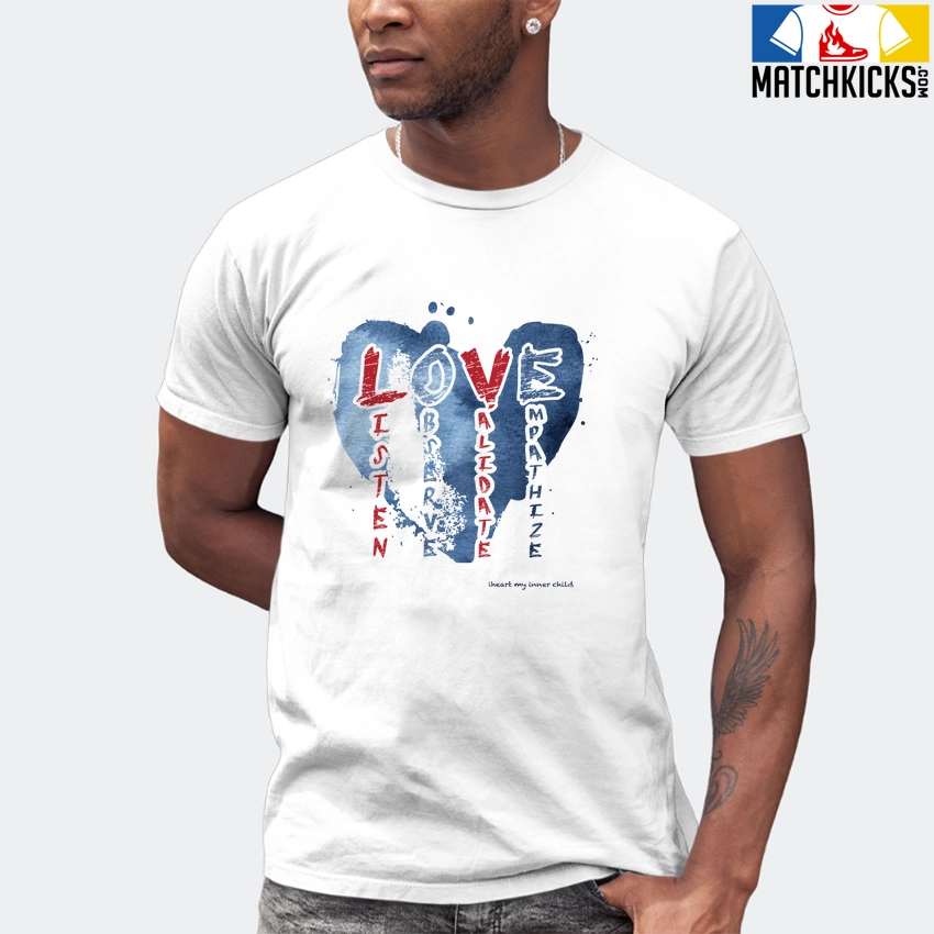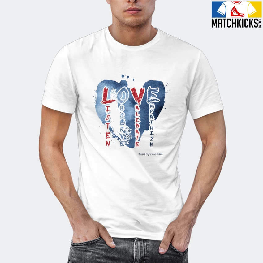 T-Shirt – Nike Dunk High Washed Denim Pack – Sneaker-Matching T-Shirt (LOVE Listen Observe Validate Empathize) is a high quality sneaker-matching T-Shirt designed to match your Nike Dunk High Washed Denim Pack sneakers. – This Tee is designed with the exact colors to match with a premium look and feel. We only use the best materials and inks to produce our merchandise. All sizes are true to size.