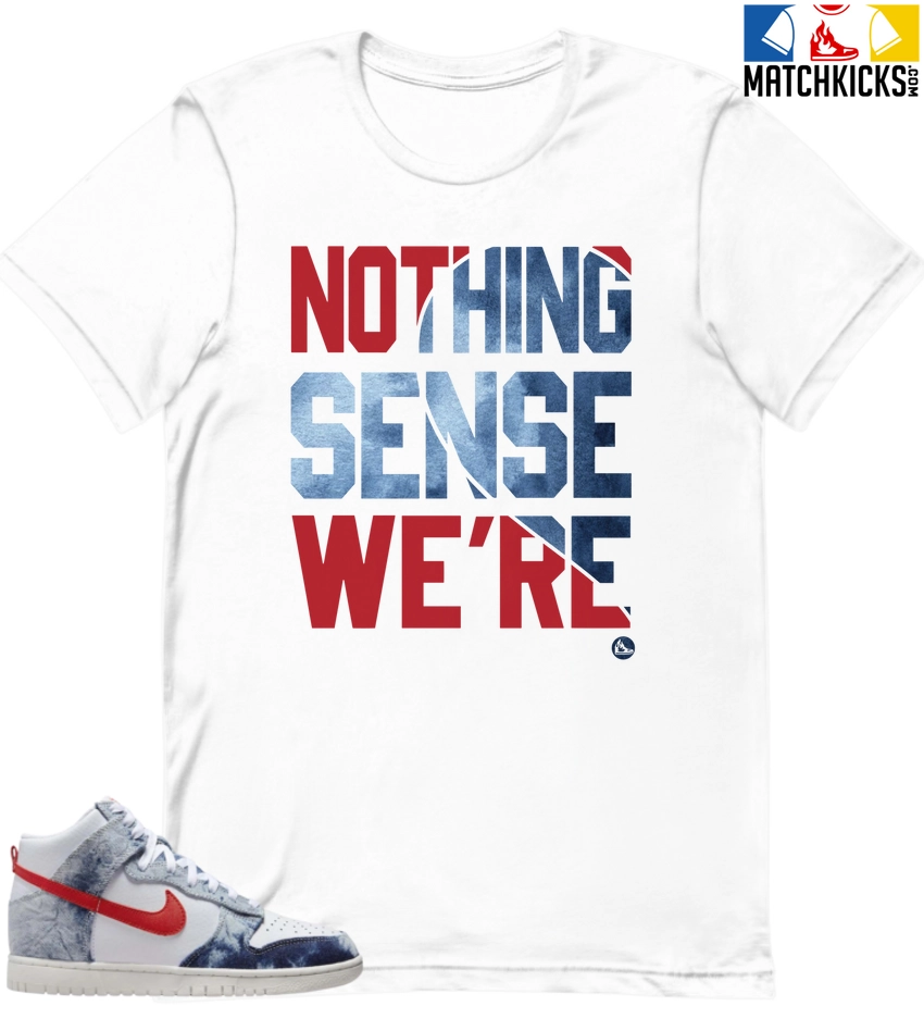 T-Shirt – Nike Dunk High Washed Denim Pack – Sneaker-Matching T-Shirt (Makes Sense Heart Left) is a high quality sneaker-matching T-Shirt designed to match your Nike Dunk High Washed Denim Pack sneakers. – This Tee is designed with the exact colors to match with a premium look and feel. We only use the best materials and inks to produce our merchandise. All sizes are true to size.