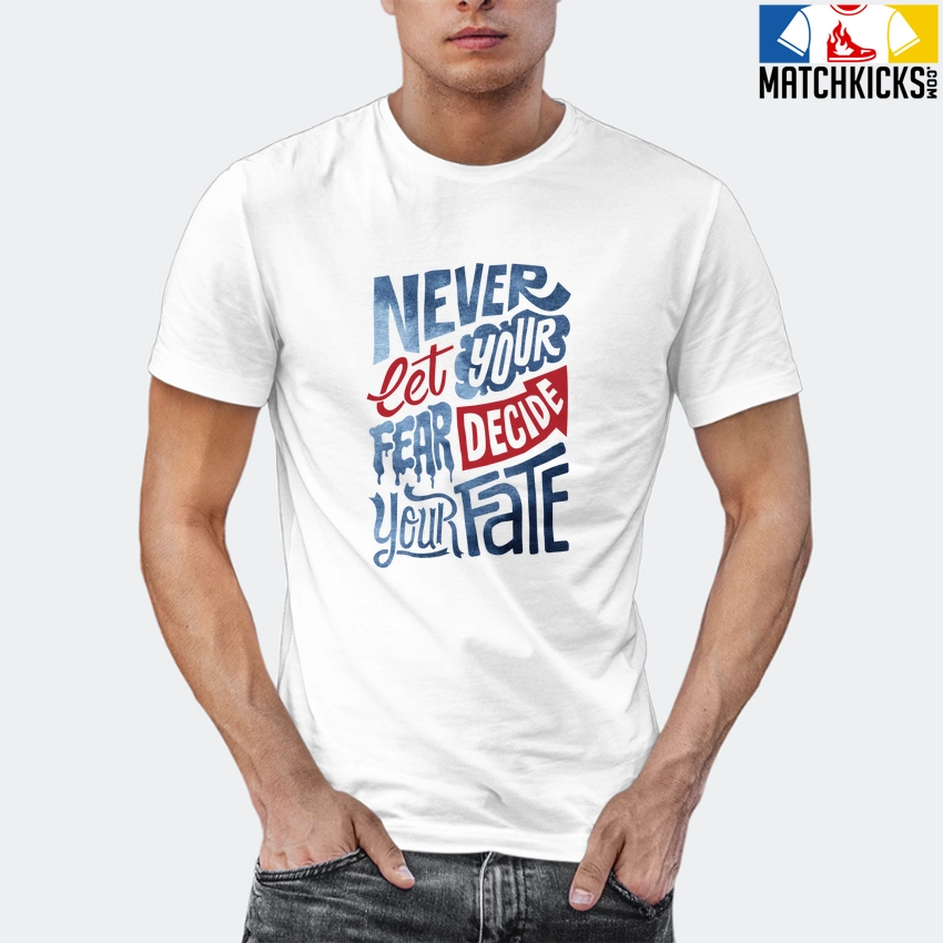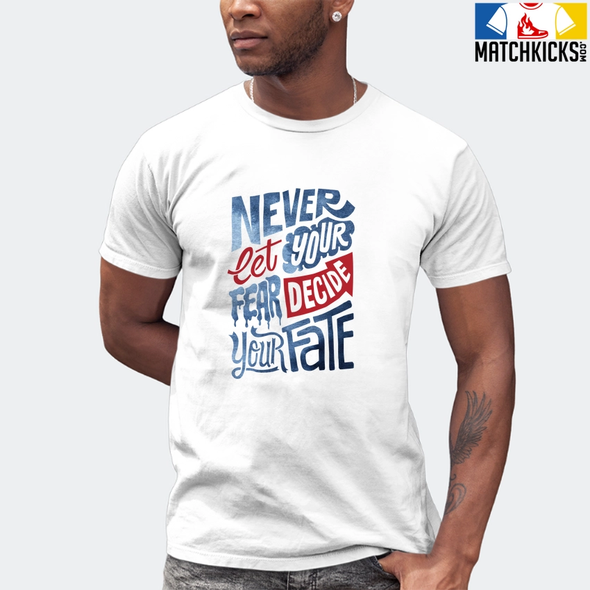 T-Shirt – Nike Dunk High Washed Denim Pack – Sneaker-Matching T-Shirt (Never Let Fear Decide) is a high quality sneaker-matching T-Shirt designed to match your Nike Dunk High Washed Denim Pack sneakers. – This Tee is designed with the exact colors to match with a premium look and feel. We only use the best materials and inks to produce our merchandise. All sizes are true to size.