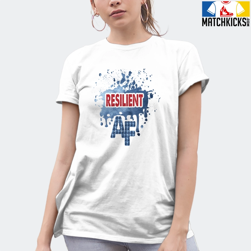 T-Shirt – Nike Dunk High Washed Denim Pack – Sneaker-Matching T-Shirt (Resilient AF) is a high quality sneaker-matching T-Shirt designed to match your Nike Dunk High Washed Denim Pack sneakers. – This Tee is designed with the exact colors to match with a premium look and feel. We only use the best materials and inks to produce our merchandise. All sizes are true to size.