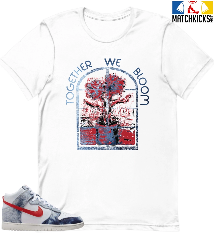 T-Shirt – Nike Dunk High Washed Denim Pack – Sneaker-Matching T-Shirt (Together We Bloom) is a high quality sneaker-matching T-Shirt designed to match your Nike Dunk High Washed Denim Pack sneakers. – This Tee is designed with the exact colors to match with a premium look and feel. We only use the best materials and inks to produce our merchandise. All sizes are true to size.