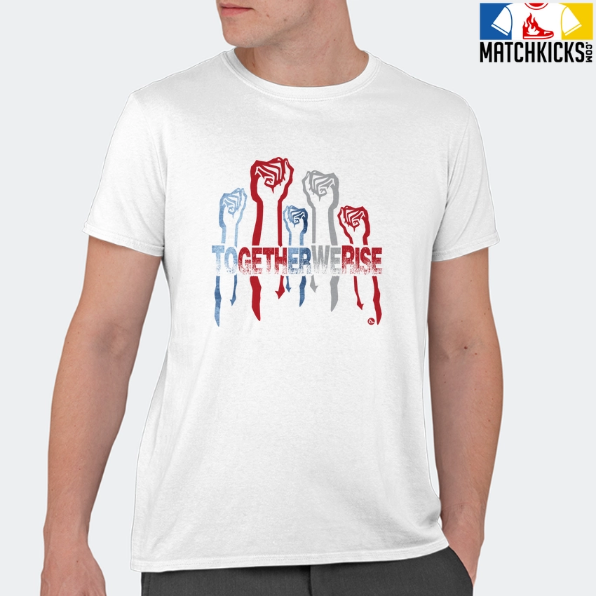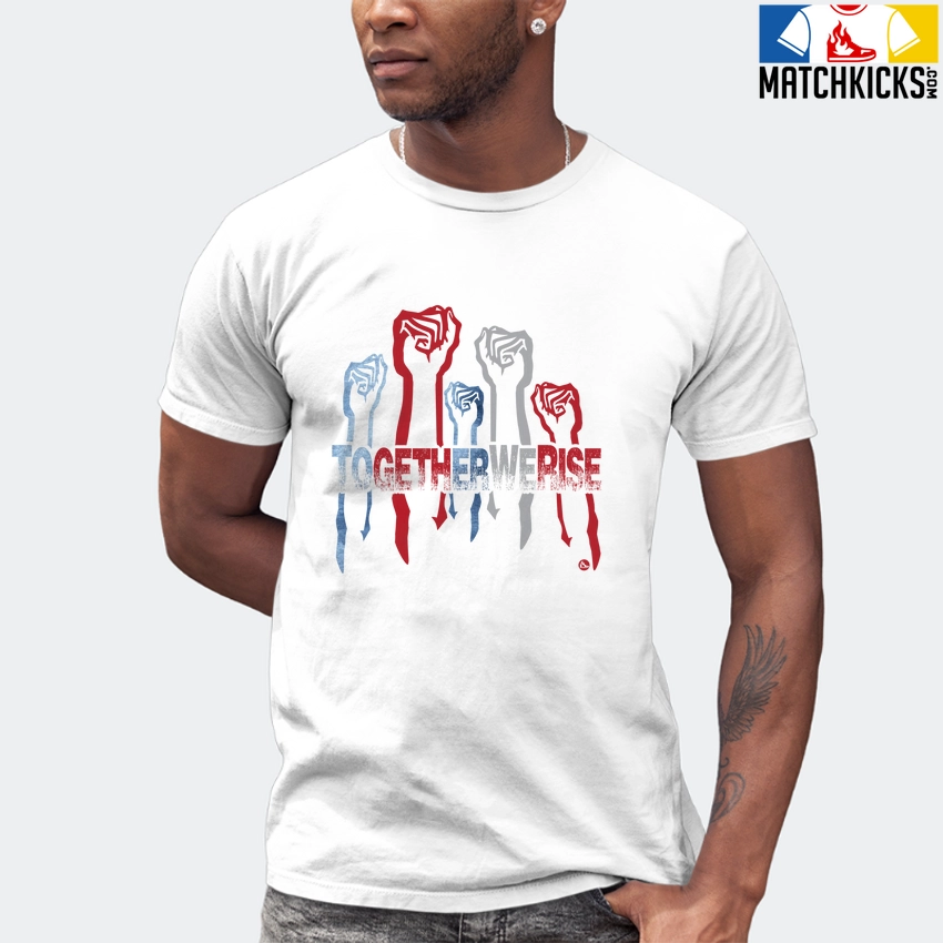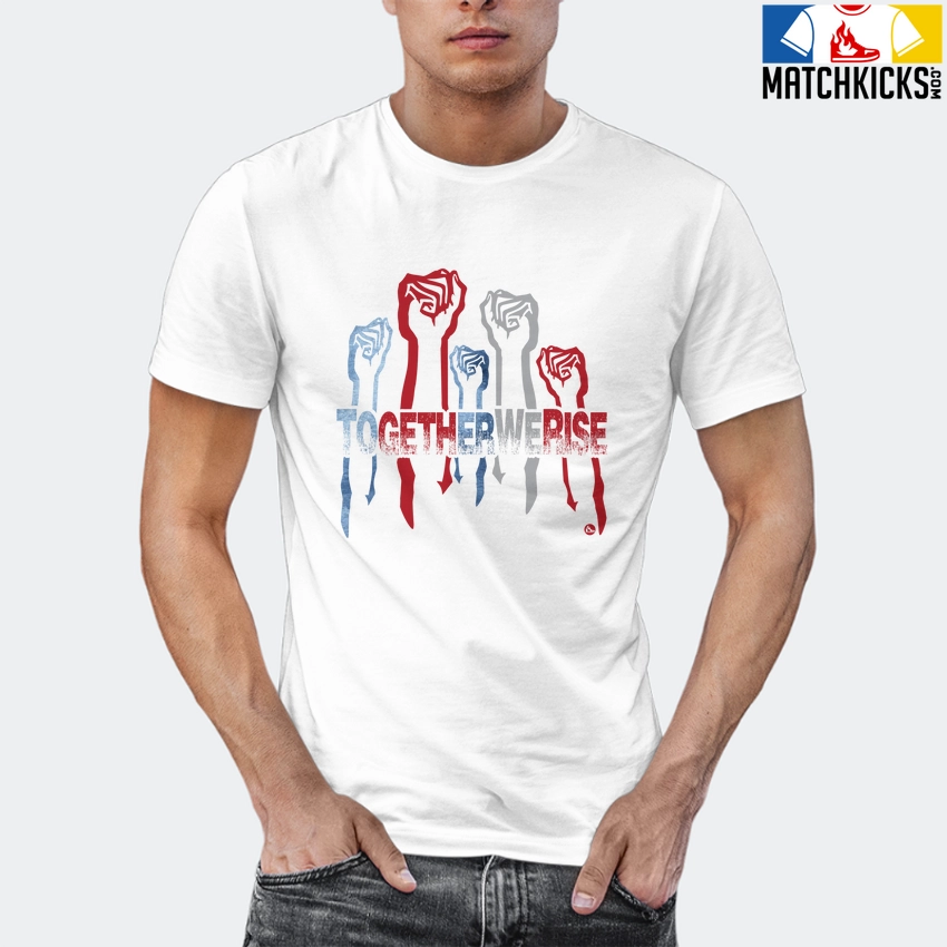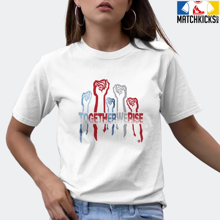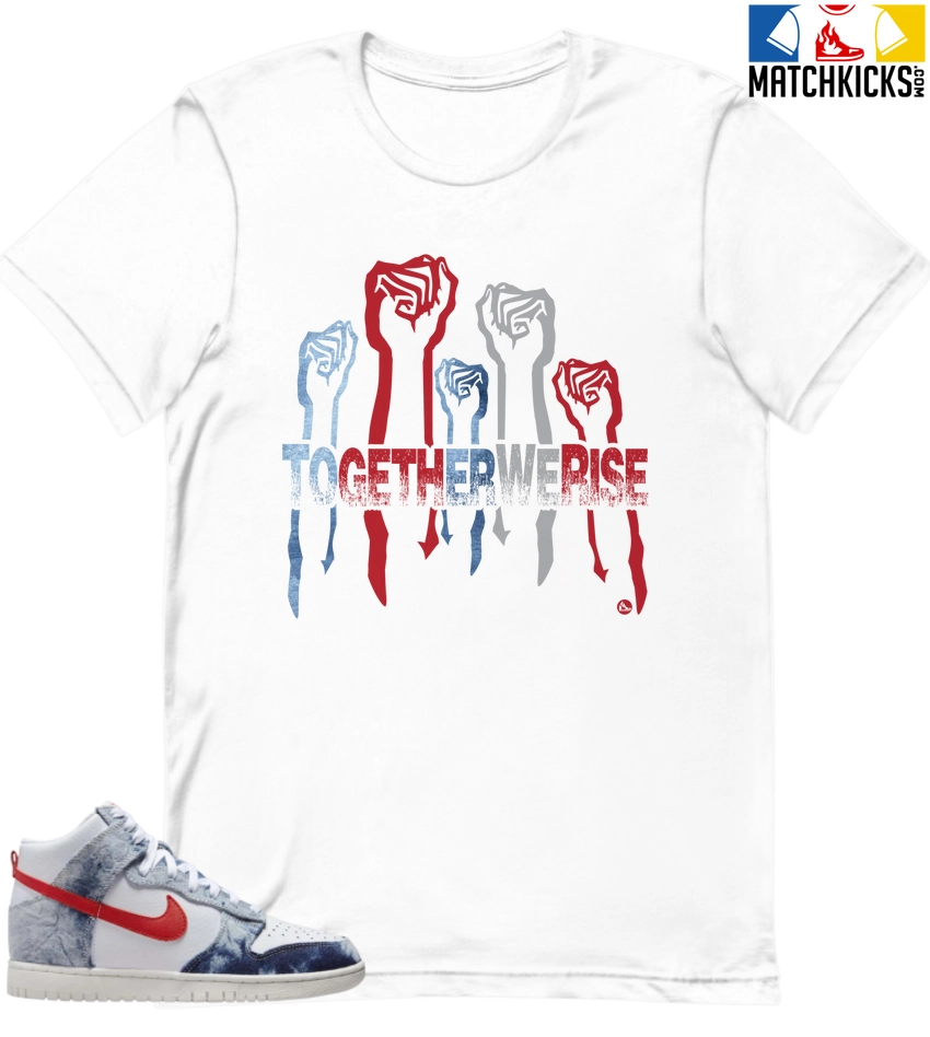 T-Shirt – Nike Dunk High Washed Denim Pack – Sneaker-Matching T-Shirt (Together We Rise) is a high quality sneaker-matching T-Shirt designed to match your Nike Dunk High Washed Denim Pack sneakers. – This Tee is designed with the exact colors to match with a premium look and feel. We only use the best materials and inks to produce our merchandise. All sizes are true to size.