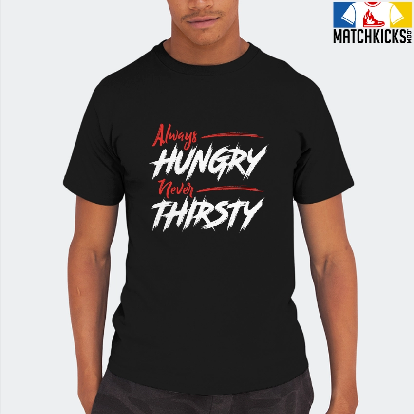 T-Shirt – Nike Dunk Low EMB NBA 75th Anniversary Chicago – Sneaker-Matching T-Shirt (Always HUNGRY Never THIRSTY) is a high quality sneaker-matching T-Shirt designed to match your Nike Dunk Low EMB NBA 75th Anniversary Chicago sneakers. – This Tee is designed with the exact colors to match with a premium look and feel. We only use the best materials and inks to produce our merchandise. All sizes are true to size.