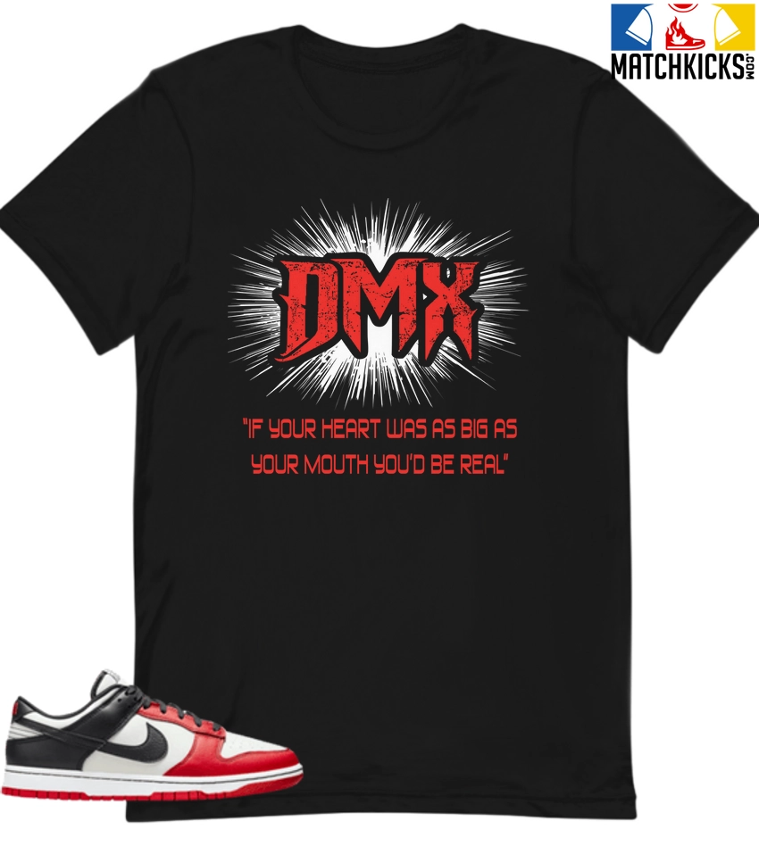 T-Shirt – Nike Dunk Low EMB NBA 75th Anniversary Chicago – Sneaker-Matching T-Shirt (DMX QUOTE) is a high quality sneaker-matching T-Shirt designed to match your Nike Dunk Low EMB NBA 75th Anniversary Chicago sneakers. – This Tee is designed with the exact colors to match with a premium look and feel. We only use the best materials and inks to produce our merchandise. All sizes are true to size.