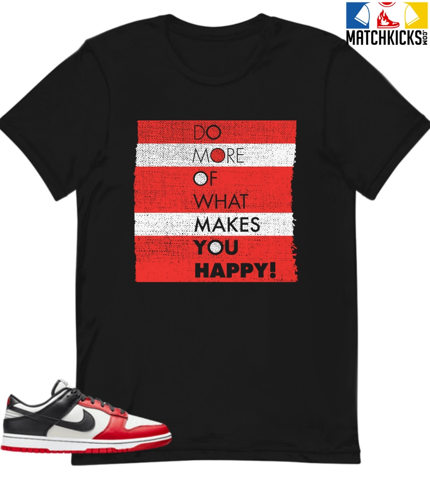 T-Shirt – Nike Dunk Low EMB NBA 75th Anniversary Chicago – Sneaker-Matching T-Shirt (Do More of What Makes You Happy) is a high quality sneaker-matching T-Shirt designed to match your Nike Dunk Low EMB NBA 75th Anniversary Chicago sneakers. – This Tee is designed with the exact colors to match with a premium look and feel. We only use the best materials and inks to produce our merchandise. All sizes are true to size.