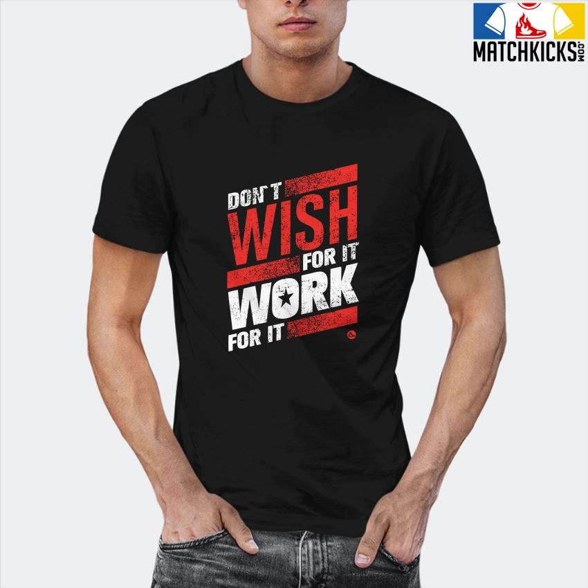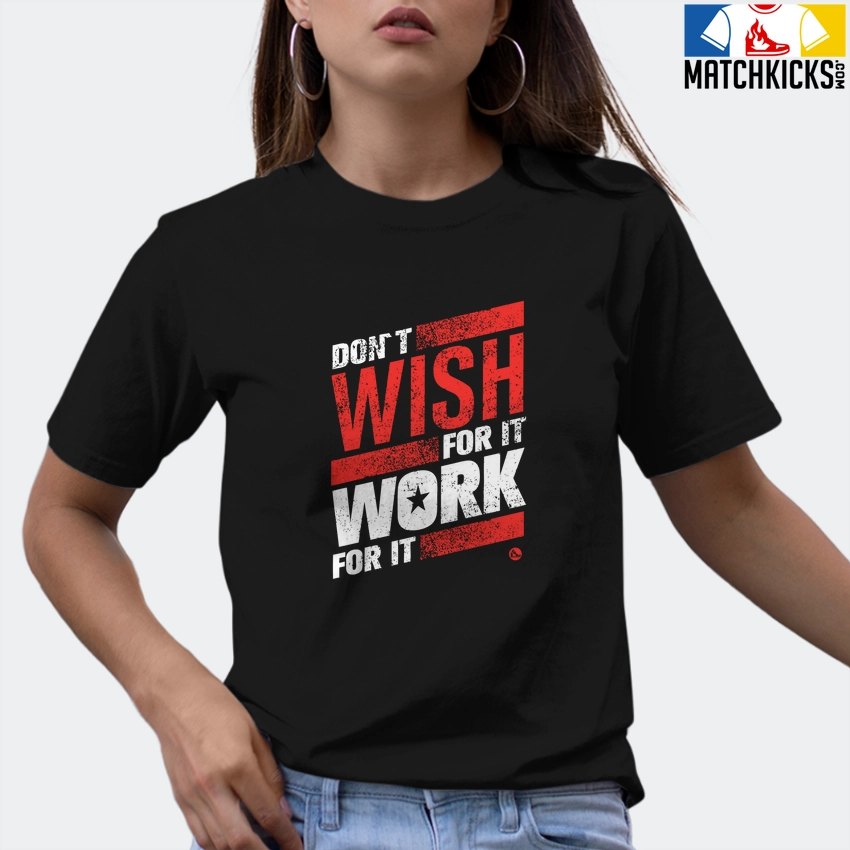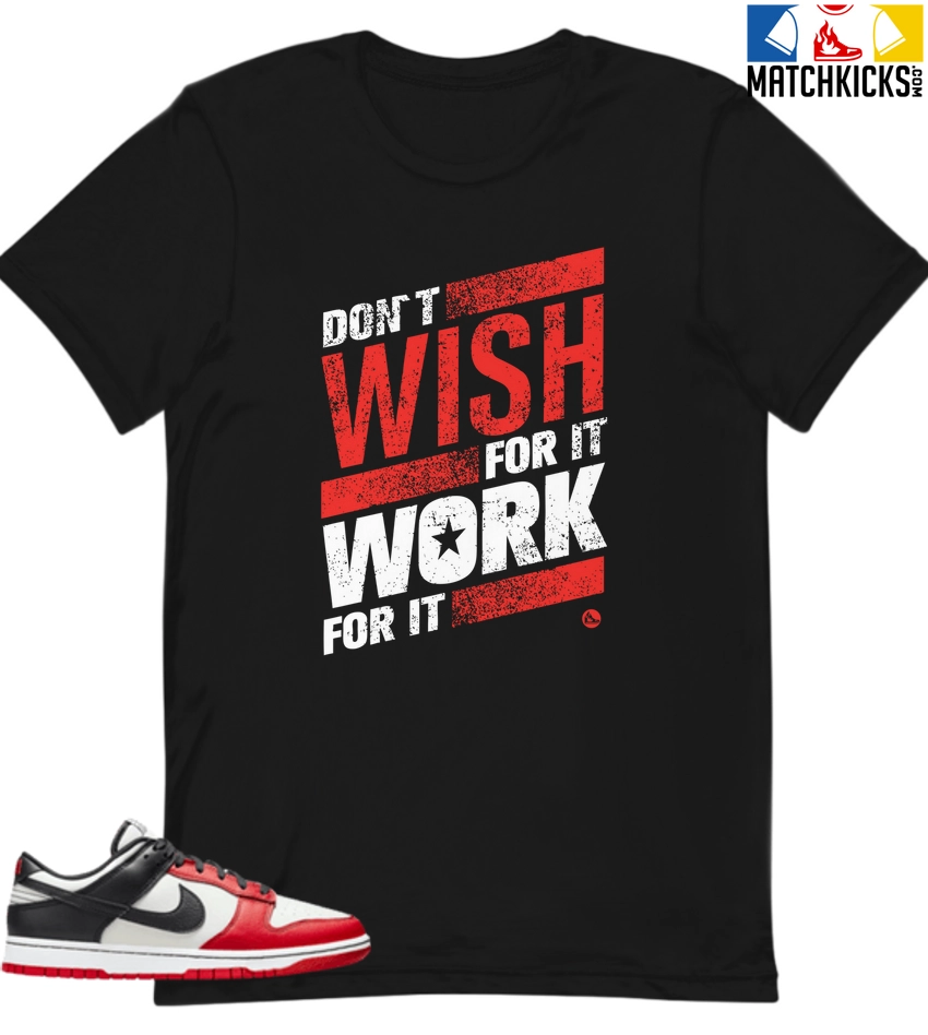 T-Shirt – Nike Dunk Low EMB NBA 75th Anniversary Chicago – Sneaker-Matching T-Shirt (Don’t Wish for it Work for it) is a high quality sneaker-matching T-Shirt designed to match your Nike Dunk Low EMB NBA 75th Anniversary Chicago sneakers. – This Tee is designed with the exact colors to match with a premium look and feel. We only use the best materials and inks to produce our merchandise. All sizes are true to size.