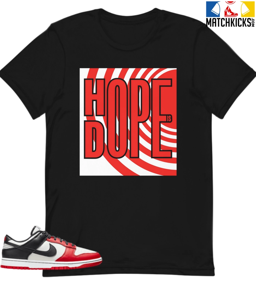 T-Shirt – Nike Dunk Low EMB NBA 75th Anniversary Chicago – Sneaker-Matching T-Shirt (HOPE is DOPE) is a high quality sneaker-matching T-Shirt designed to match your Nike Dunk Low EMB NBA 75th Anniversary Chicago sneakers. – This Tee is designed with the exact colors to match with a premium look and feel. We only use the best materials and inks to produce our merchandise. All sizes are true to size.