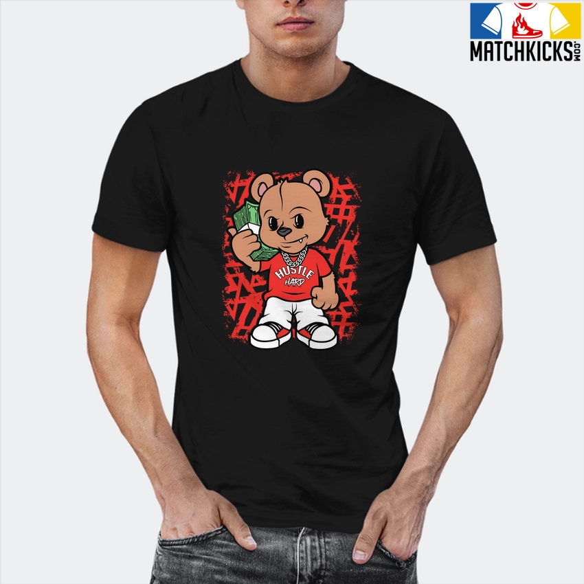 T-Shirt – Nike Dunk Low EMB NBA 75th Anniversary Chicago – Sneaker-Matching T-Shirt (HUSTLE HARD BEAR) is a high quality sneaker-matching T-Shirt designed to match your Nike Dunk Low EMB NBA 75th Anniversary Chicago sneakers. – This Tee is designed with the exact colors to match with a premium look and feel. We only use the best materials and inks to produce our merchandise. All sizes are true to size.