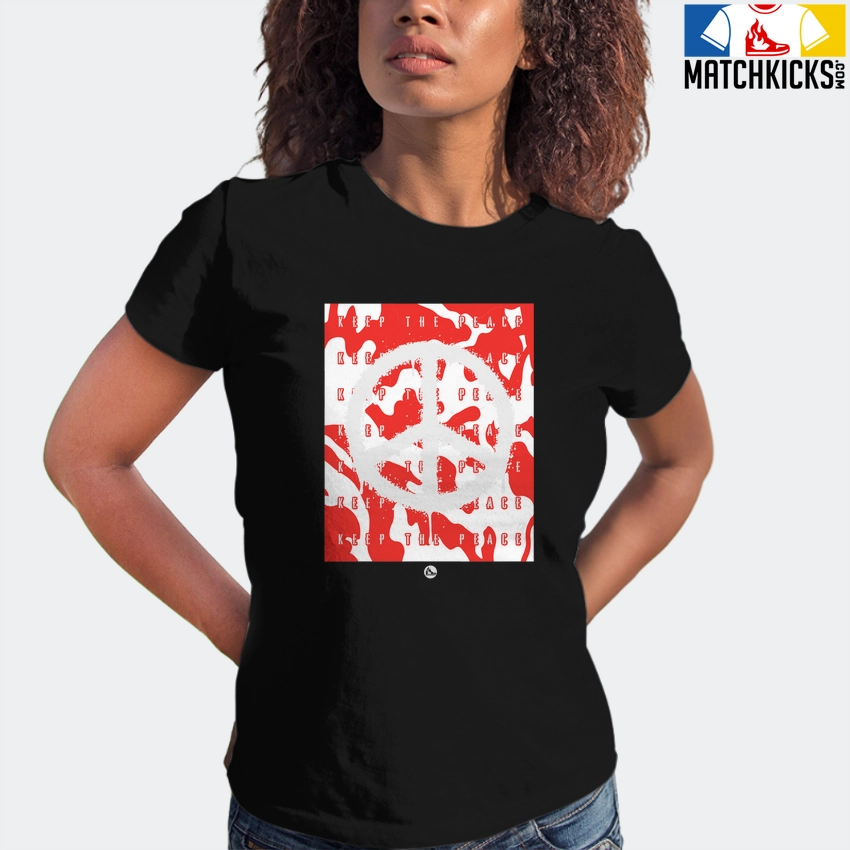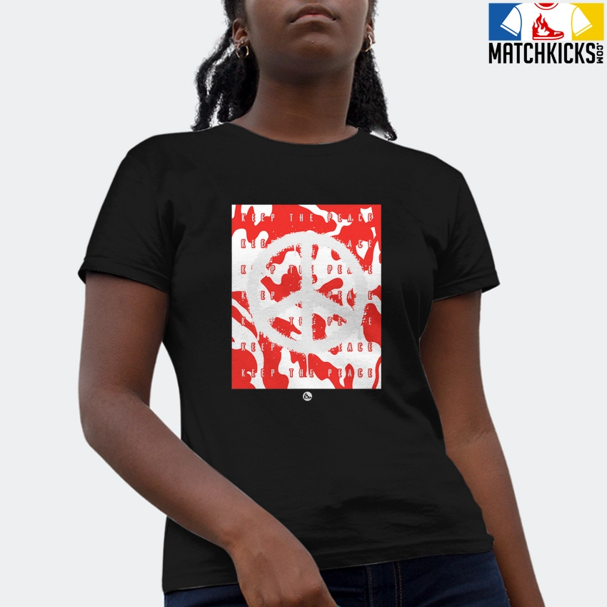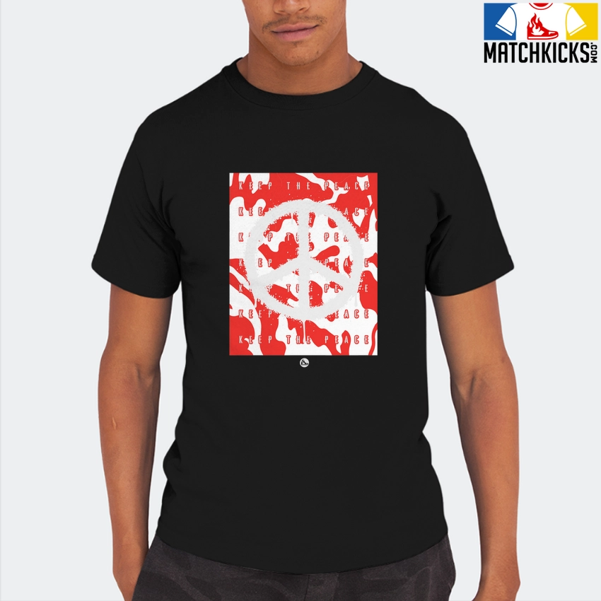 T-Shirt – Nike Dunk Low EMB NBA 75th Anniversary Chicago – Sneaker-Matching T-Shirt (Keep the Peace) is a high quality sneaker-matching T-Shirt designed to match your Nike Dunk Low EMB NBA 75th Anniversary Chicago sneakers. – This Tee is designed with the exact colors to match with a premium look and feel. We only use the best materials and inks to produce our merchandise. All sizes are true to size.