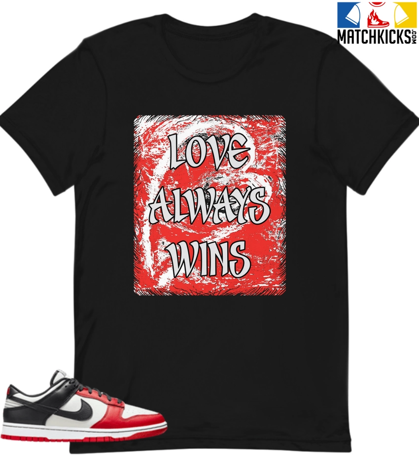 T-Shirt – Nike Dunk Low EMB NBA 75th Anniversary Chicago – Sneaker-Matching T-Shirt (Love Always Wins) is a high quality sneaker-matching T-Shirt designed to match your Nike Dunk Low EMB NBA 75th Anniversary Chicago sneakers. – This Tee is designed with the exact colors to match with a premium look and feel. We only use the best materials and inks to produce our merchandise. All sizes are true to size.