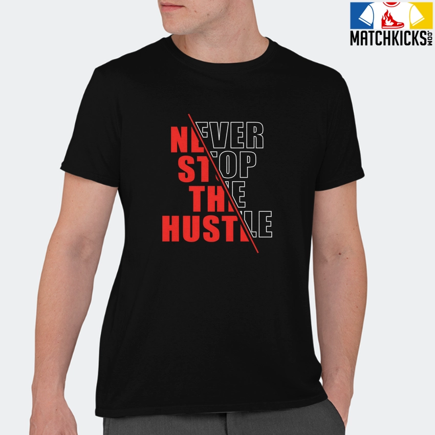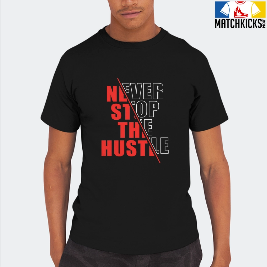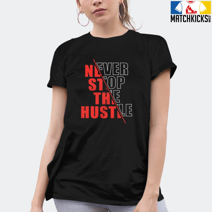 T-Shirt – Nike Dunk Low EMB NBA 75th Anniversary Chicago – Sneaker-Matching T-Shirt (Never Stop the Hustle) is a high quality sneaker-matching T-Shirt designed to match your Nike Dunk Low EMB NBA 75th Anniversary Chicago sneakers. – This Tee is designed with the exact colors to match with a premium look and feel. We only use the best materials and inks to produce our merchandise. All sizes are true to size.