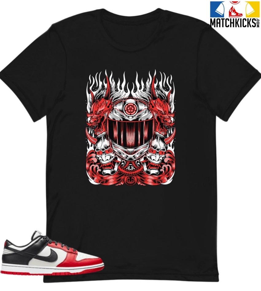T-Shirt – Nike Dunk Low EMB NBA 75th Anniversary Chicago – Sneaker-Matching T-Shirt (ONI Mask) is a high quality sneaker-matching T-Shirt designed to match your Nike Dunk Low EMB NBA 75th Anniversary Chicago sneakers. – This Tee is designed with the exact colors to match with a premium look and feel. We only use the best materials and inks to produce our merchandise. All sizes are true to size.