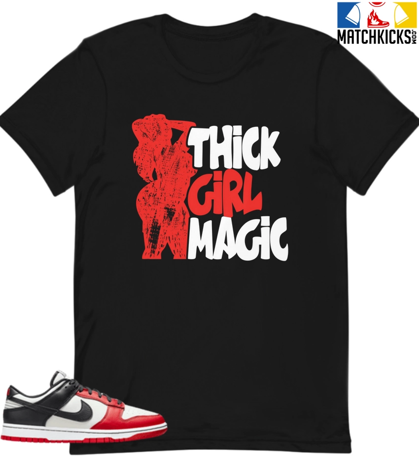 T-Shirt – Nike Dunk Low EMB NBA 75th Anniversary Chicago – Sneaker-Matching T-Shirt (THICK GIRL MAGIC) is a high quality sneaker-matching T-Shirt designed to match your Nike Dunk Low EMB NBA 75th Anniversary Chicago sneakers. – This Tee is designed with the exact colors to match with a premium look and feel. We only use the best materials and inks to produce our merchandise. All sizes are true to size.