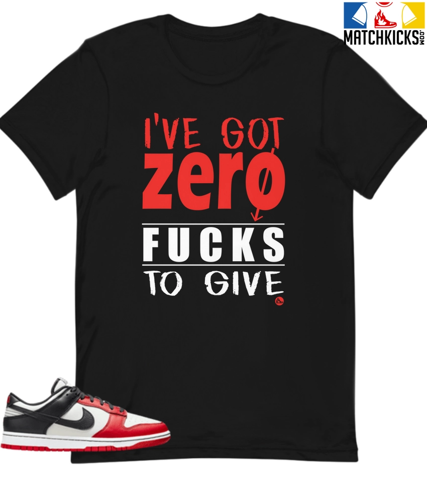 T-Shirt – Nike Dunk Low EMB NBA 75th Anniversary Chicago – Sneaker-Matching T-Shirt (ZERO Fucks to Give) is a high quality sneaker-matching T-Shirt designed to match your Nike Dunk Low EMB NBA 75th Anniversary Chicago sneakers. – This Tee is designed with the exact colors to match with a premium look and feel. We only use the best materials and inks to produce our merchandise. All sizes are true to size.