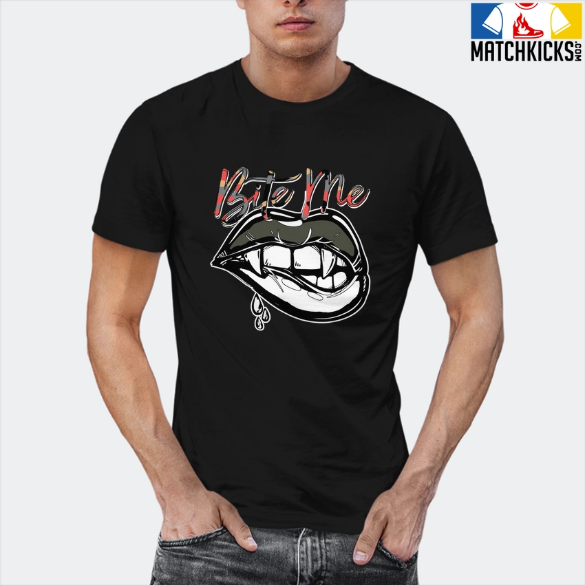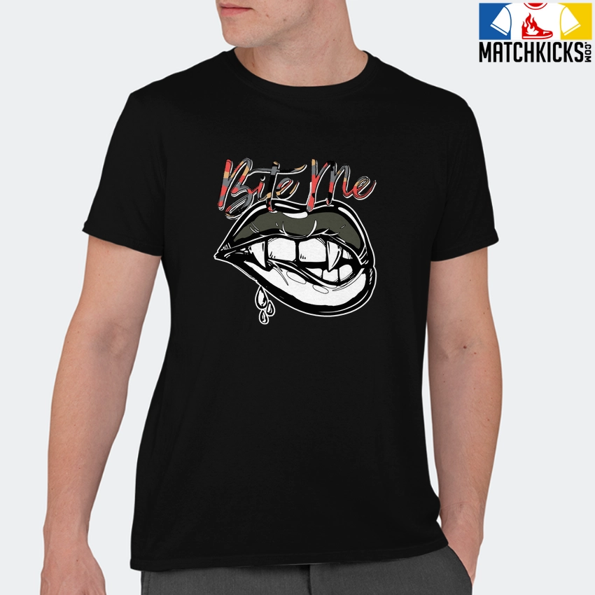 T-Shirt – Nike Dunk Low SE GS Sail Multi-Camo – Sneaker-Matching T-Shirt (Bite Me) is a high quality sneaker-matching T-Shirt designed to match your Nike Dunk Low SE GS Sail Multi-Camo sneakers. – This Tee is designed with the exact colors to match with a premium look and feel. We only use the best materials and inks to produce our merchandise. All sizes are true to size.