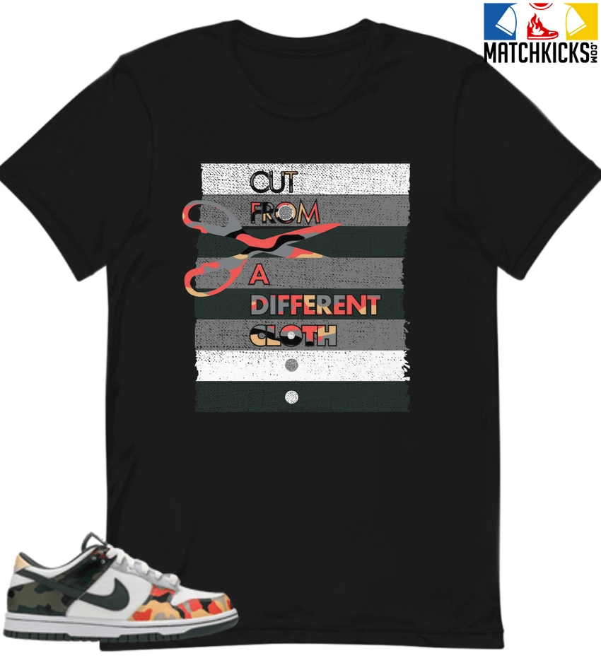 T-Shirt – Nike Dunk Low SE GS Sail Multi-Camo – Sneaker-Matching T-Shirt (Cut From a Different Cloth) is a high quality sneaker-matching T-Shirt designed to match your Nike Dunk Low SE GS Sail Multi-Camo sneakers. – This Tee is designed with the exact colors to match with a premium look and feel. We only use the best materials and inks to produce our merchandise. All sizes are true to size.