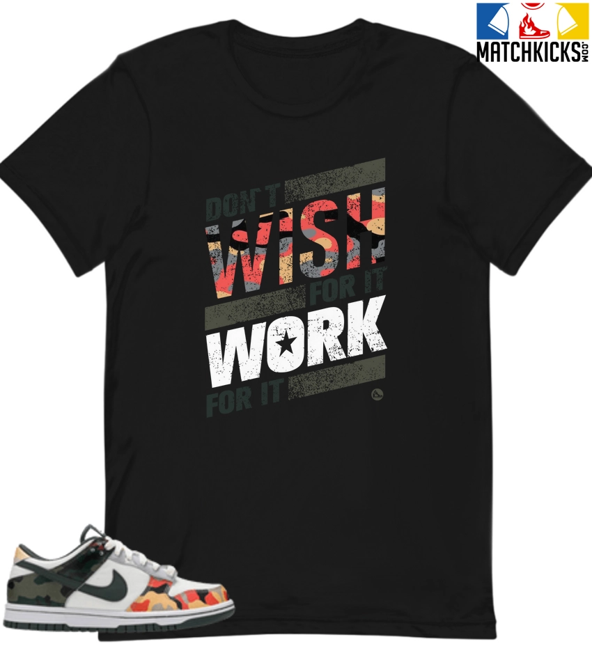 T-Shirt – Nike Dunk Low SE GS Sail Multi-Camo – Sneaker-Matching T-Shirt (Don’t Wish For It Work For It)