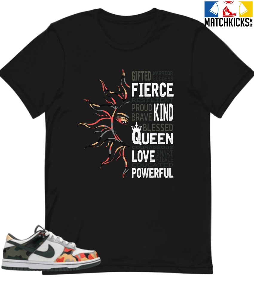T-Shirt – Nike Dunk Low SE GS Sail Multi-Camo – Sneaker-Matching T-Shirt (Empowered) is a high quality sneaker-matching T-Shirt designed to match your Nike Dunk Low SE GS Sail Multi-Camo sneakers. – This Tee is designed with the exact colors to match with a premium look and feel. We only use the best materials and inks to produce our merchandise. All sizes are true to size.
