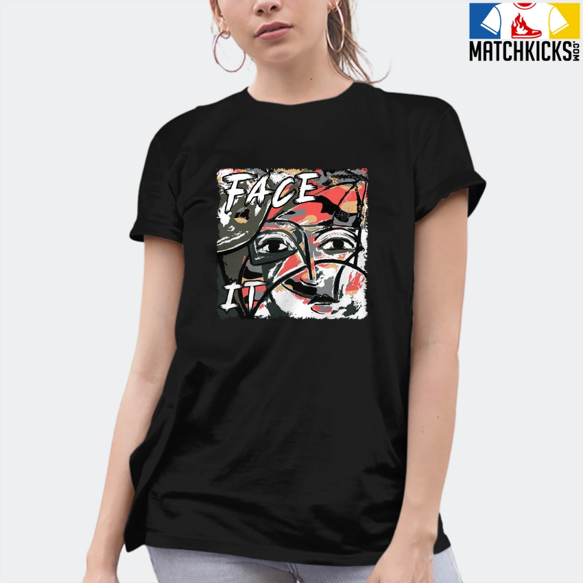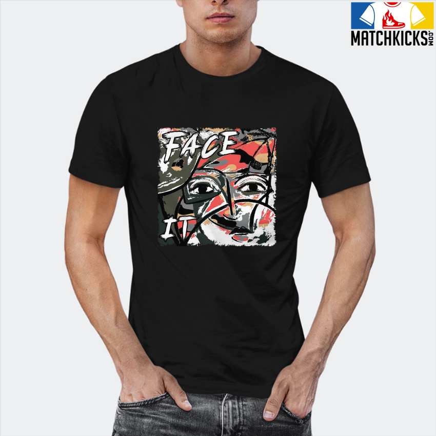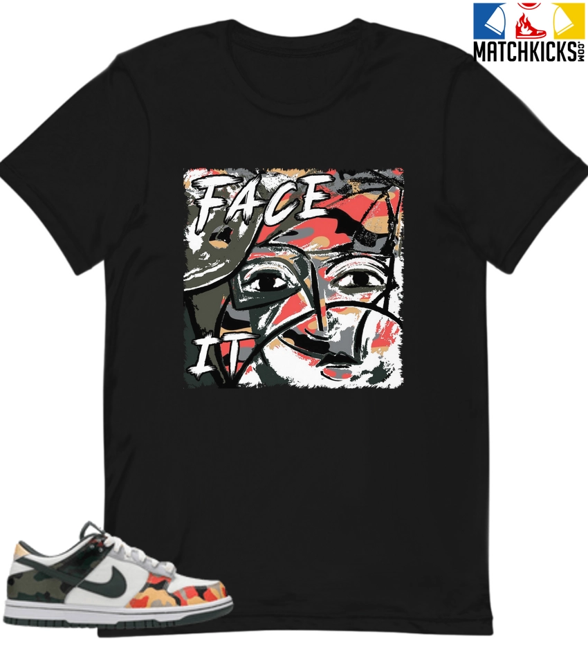 T-Shirt – Nike Dunk Low SE GS Sail Multi-Camo – Sneaker-Matching T-Shirt (FACE IT) is a high quality sneaker-matching T-Shirt designed to match your Nike Dunk Low SE GS Sail Multi-Camo sneakers. – This Tee is designed with the exact colors to match with a premium look and feel. We only use the best materials and inks to produce our merchandise. All sizes are true to size.