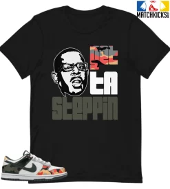 T-Shirt – Nike Dunk Low SE GS Sail Multi-Camo – Sneaker-Matching T-Shirt (GET TA STEPPIN with MARTIN) is a high quality sneaker-matching T-Shirt designed to match your Nike Dunk Low SE GS Sail Multi-Camo sneakers. – This Tee is designed with the exact colors to match with a premium look and feel. We only use the best materials and inks to produce our merchandise. All sizes are true to size.
