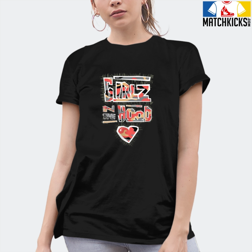 T-Shirt – Nike Dunk Low SE GS Sail Multi-Camo – Sneaker-Matching T-Shirt (Girlz in the Hood) is a high quality sneaker-matching T-Shirt designed to match your Nike Dunk Low SE GS Sail Multi-Camo sneakers. – This Tee is designed with the exact colors to match with a premium look and feel. We only use the best materials and inks to produce our merchandise. All sizes are true to size.