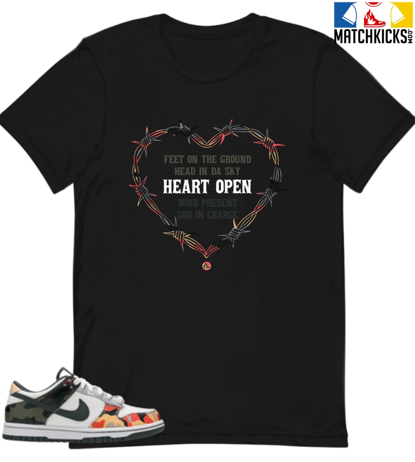 T-Shirt – Nike Dunk Low SE GS Sail Multi-Camo – Sneaker-Matching T-Shirt (Heart Open)