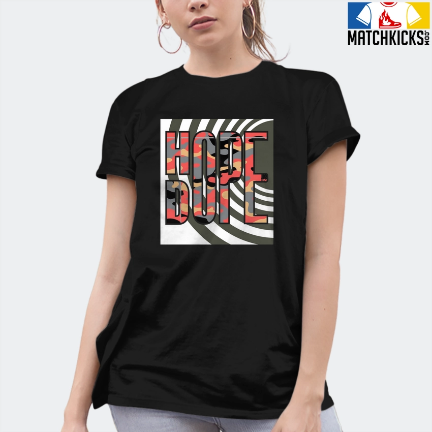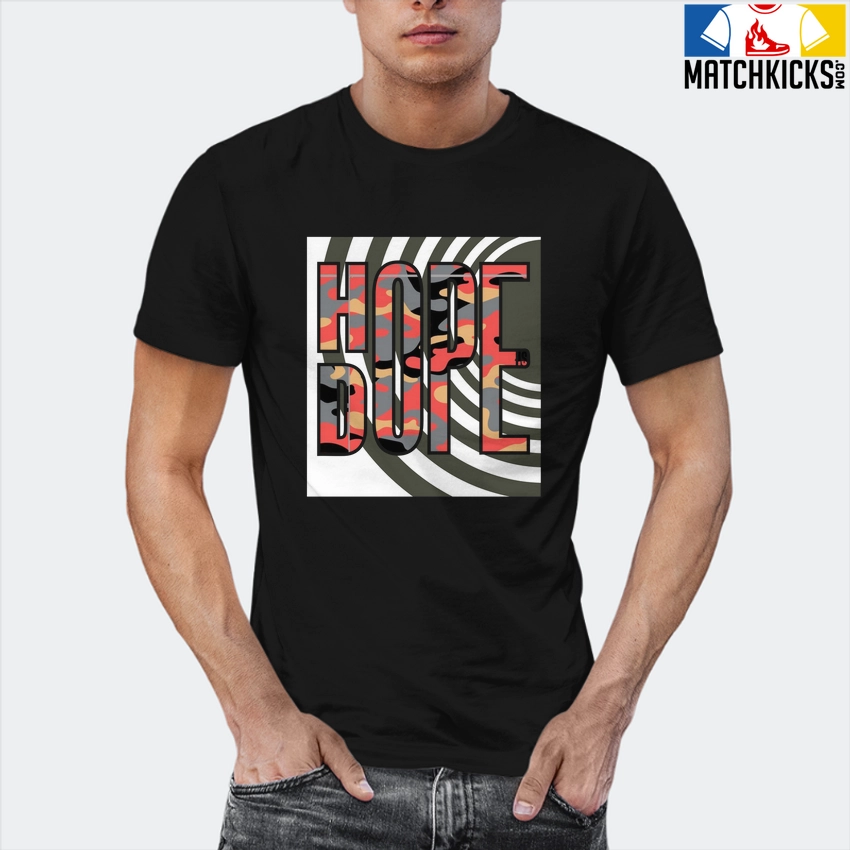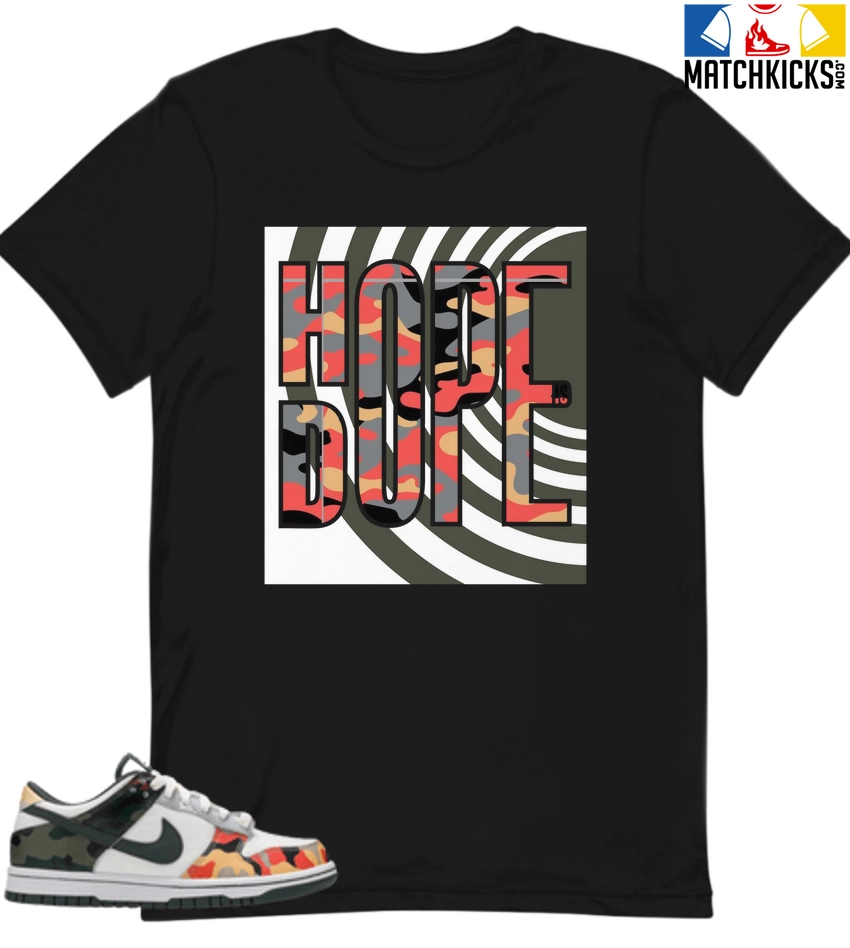 T-Shirt – Nike Dunk Low SE GS Sail Multi-Camo – Sneaker-Matching T-Shirt (HOPE is DOPE) is a high quality sneaker-matching T-Shirt designed to match your Nike Dunk Low SE GS Sail Multi-Camo sneakers. – This Tee is designed with the exact colors to match with a premium look and feel. We only use the best materials and inks to produce our merchandise. All sizes are true to size.