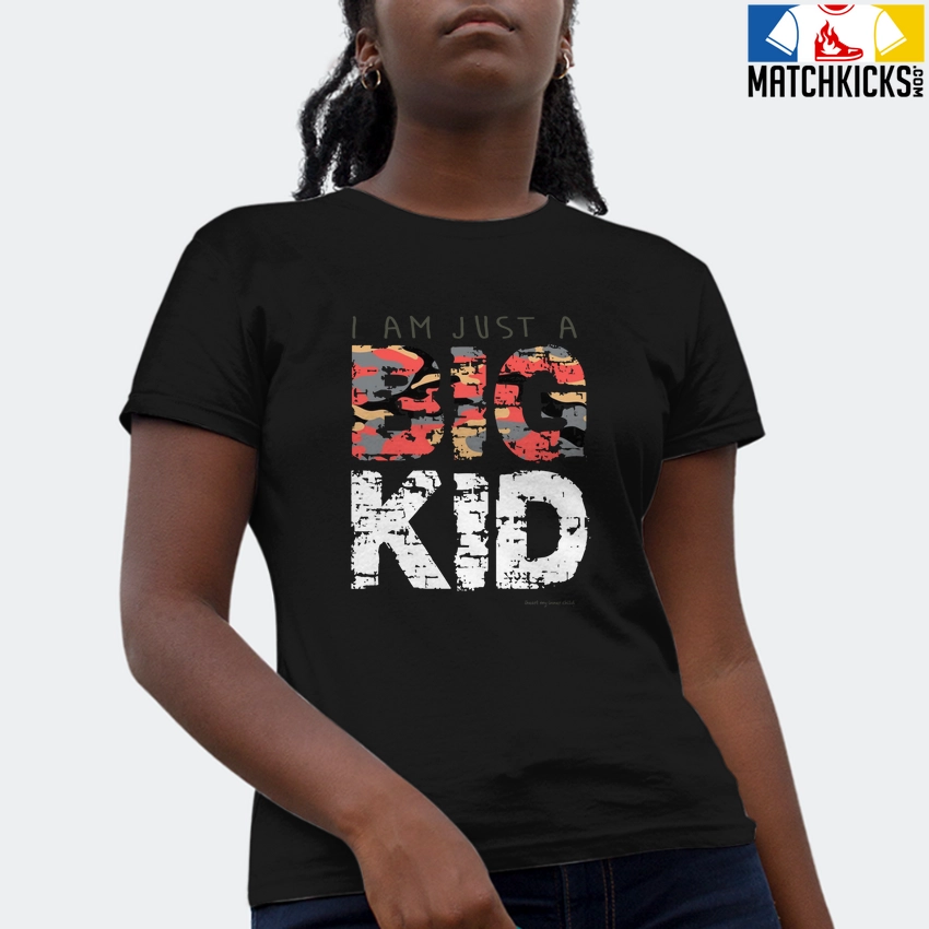 T-Shirt – Nike Dunk Low SE GS Sail Multi-Camo – Sneaker-Matching T-Shirt (I am just a BIG KID) is a high quality sneaker-matching T-Shirt designed to match your Nike Dunk Low SE GS Sail Multi-Camo sneakers. – This Tee is designed with the exact colors to match with a premium look and feel. We only use the best materials and inks to produce our merchandise. All sizes are true to size.