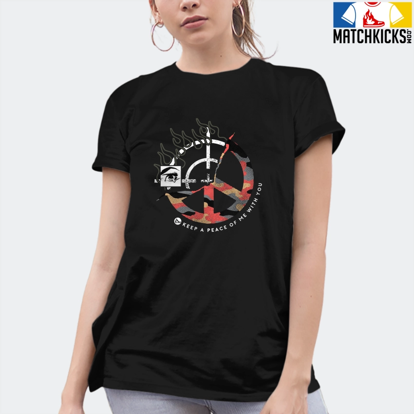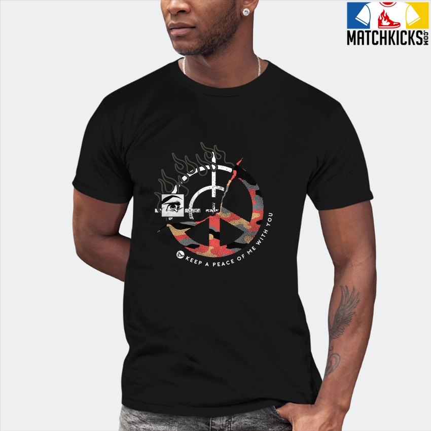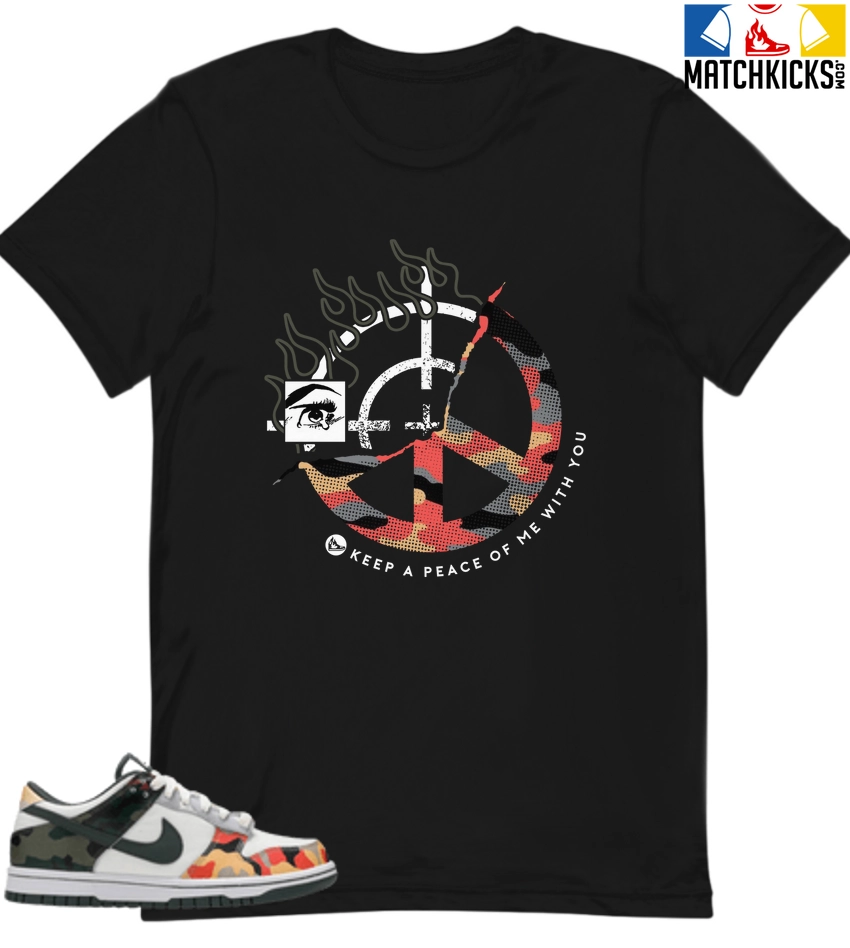 T-Shirt – Nike Dunk Low SE GS Sail Multi-Camo – Sneaker-Matching T-Shirt (Keep a Peace) is a high quality sneaker-matching T-Shirt designed to match your Nike Dunk Low SE GS Sail Multi-Camo sneakers. – This Tee is designed with the exact colors to match with a premium look and feel. We only use the best materials and inks to produce our merchandise. All sizes are true to size.