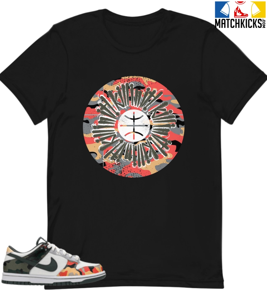 T-Shirt – Nike Dunk Low SE GS Sail Multi-Camo – Sneaker-Matching T-Shirt (Killin It) is a high quality sneaker-matching T-Shirt designed to match your Nike Dunk Low SE GS Sail Multi-Camo sneakers. – This Tee is designed with the exact colors to match with a premium look and feel. We only use the best materials and inks to produce our merchandise. All sizes are true to size.