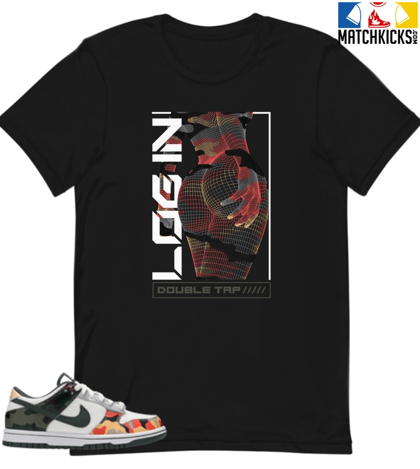 T-Shirt – Nike Dunk Low SE GS Sail Multi-Camo – Sneaker-Matching T-Shirt (LOGIN) is a high quality sneaker-matching T-Shirt designed to match your Nike Dunk Low SE GS Sail Multi-Camo sneakers. – This Tee is designed with the exact colors to match with a premium look and feel. We only use the best materials and inks to produce our merchandise. All sizes are true to size.