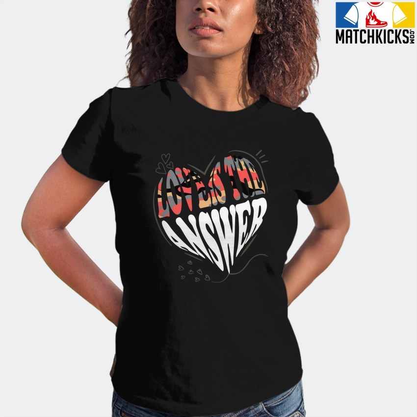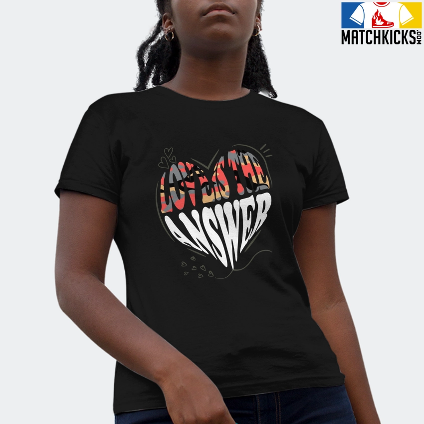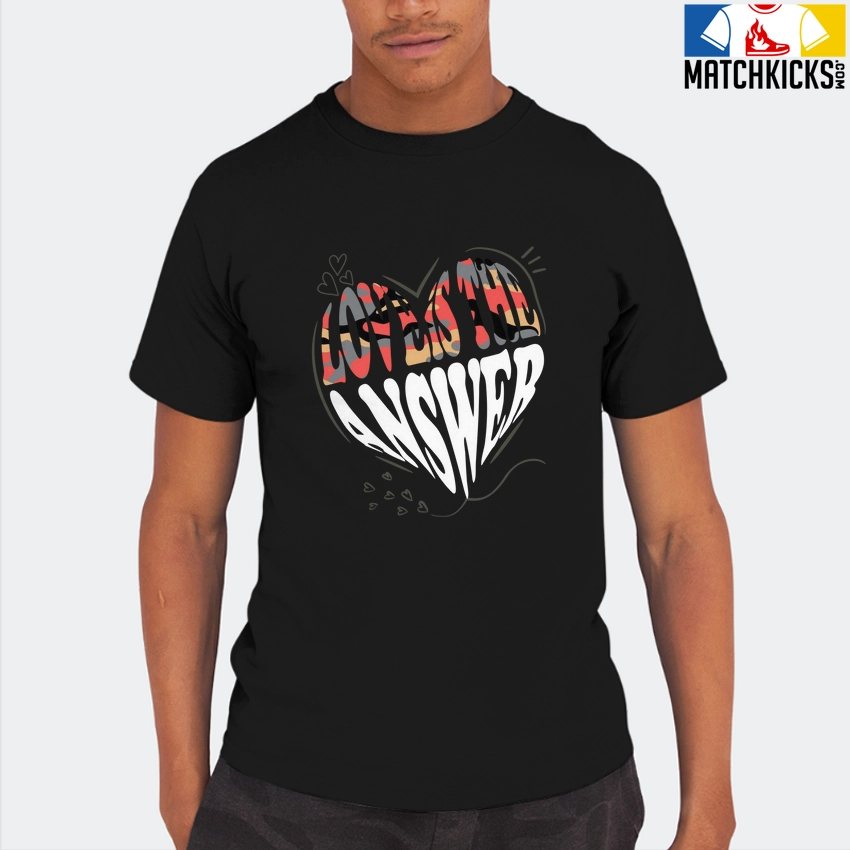 T-Shirt – Nike Dunk Low SE GS Sail Multi-Camo – Sneaker-Matching T-Shirt (Love is the Answer) is a high quality sneaker-matching T-Shirt designed to match your Nike Dunk Low SE GS Sail Multi-Camo sneakers. – This Tee is designed with the exact colors to match with a premium look and feel. We only use the best materials and inks to produce our merchandise. All sizes are true to size.