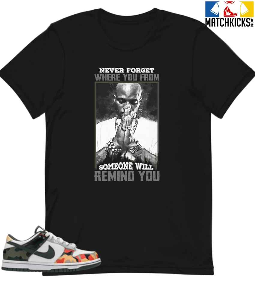 T-Shirt – Nike Dunk Low SE GS Sail Multi-Camo – Sneaker-Matching T-Shirt (Never Forget Where You From)