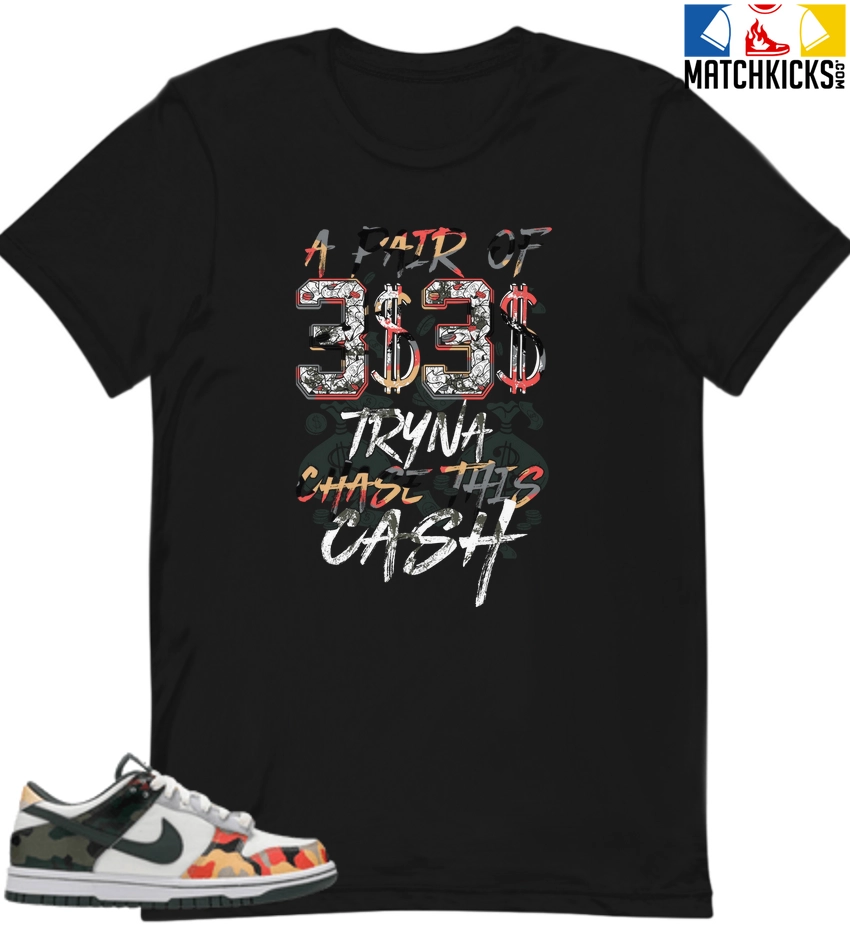 T-Shirt – Nike Dunk Low SE GS Sail Multi-Camo – Sneaker-Matching T-Shirt (PAIR OF THREES) is a high quality sneaker-matching T-Shirt designed to match your Nike Dunk Low SE GS Sail Multi-Camo sneakers. – This Tee is designed with the exact colors to match with a premium look and feel. We only use the best materials and inks to produce our merchandise. All sizes are true to size.