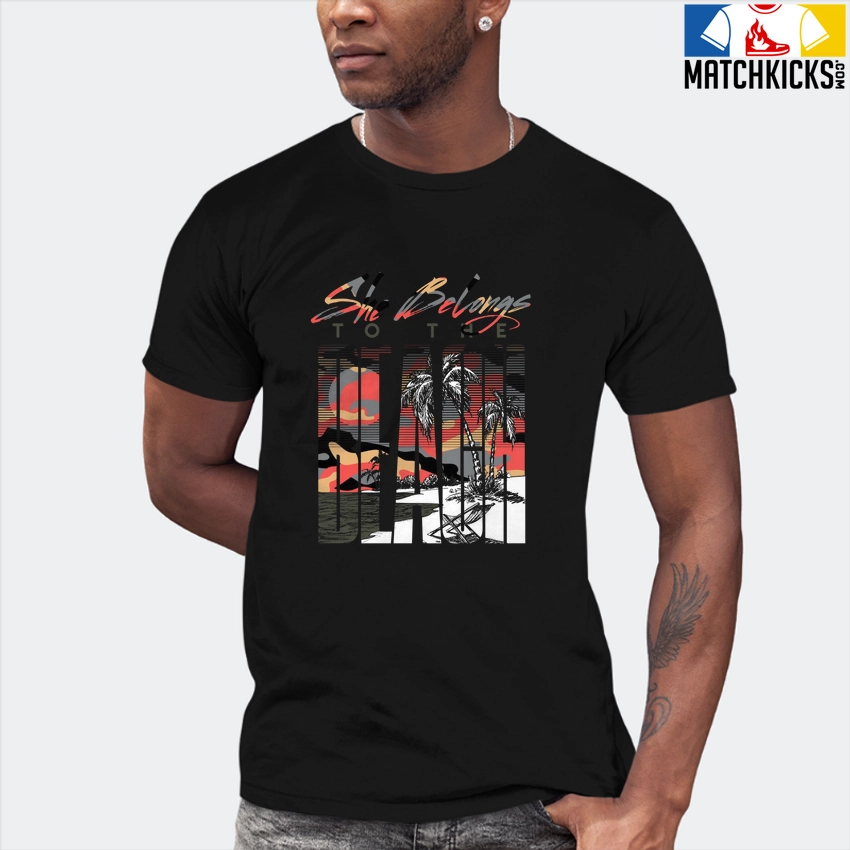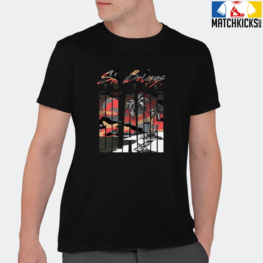 T-Shirt – Nike Dunk Low SE GS Sail Multi-Camo – Sneaker-Matching T-Shirt (She Belongs To The Beach) is a high quality sneaker-matching T-Shirt designed to match your Nike Dunk Low SE GS Sail Multi-Camo sneakers. – This Tee is designed with the exact colors to match with a premium look and feel. We only use the best materials and inks to produce our merchandise. All sizes are true to size.