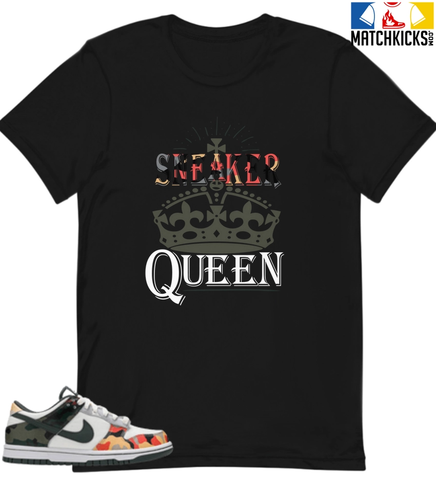T-Shirt – Nike Dunk Low SE GS Sail Multi-Camo – Sneaker-Matching T-Shirt (SNEAKER QUEEN) is a high quality sneaker-matching T-Shirt designed to match your Nike Dunk Low SE GS Sail Multi-Camo sneakers. – This Tee is designed with the exact colors to match with a premium look and feel. We only use the best materials and inks to produce our merchandise. All sizes are true to size.