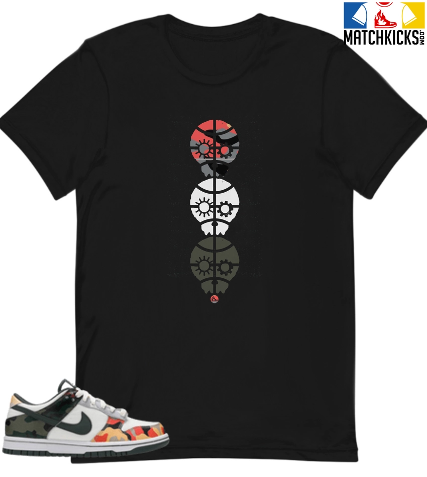 T-Shirt – Nike Dunk Low SE GS Sail Multi-Camo – Sneaker-Matching T-Shirt (Three Bad Skulls) is a high quality sneaker-matching T-Shirt designed to match your Nike Dunk Low SE GS Sail Multi-Camo sneakers. – This Tee is designed with the exact colors to match with a premium look and feel. We only use the best materials and inks to produce our merchandise. All sizes are true to size.