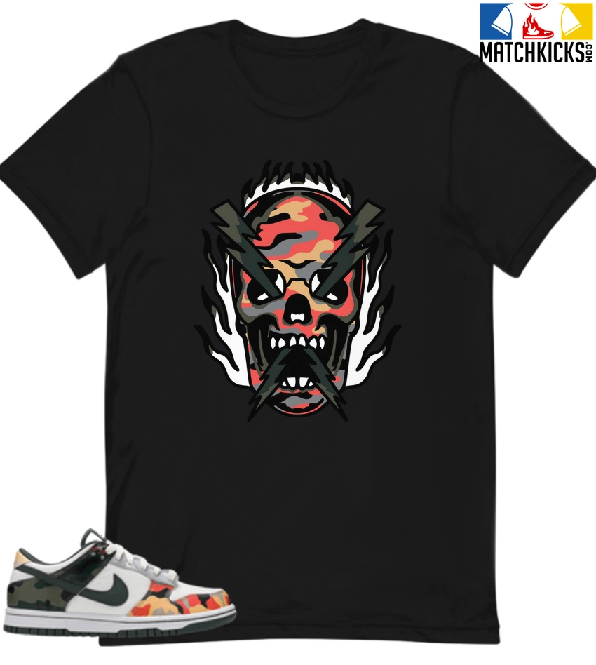T-Shirt – Nike Dunk Low SE GS Sail Multi-Camo – Sneaker-Matching T-Shirt (THUNDER SKULL) is a high quality sneaker-matching T-Shirt designed to match your Nike Dunk Low SE GS Sail Multi-Camo sneakers. – This Tee is designed with the exact colors to match with a premium look and feel. We only use the best materials and inks to produce our merchandise. All sizes are true to size.