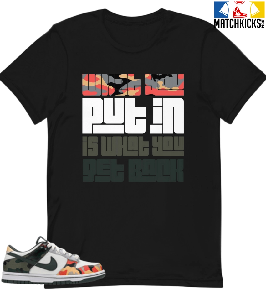 T-Shirt – Nike Dunk Low SE GS Sail Multi-Camo – Sneaker-Matching T-Shirt (What You Get)