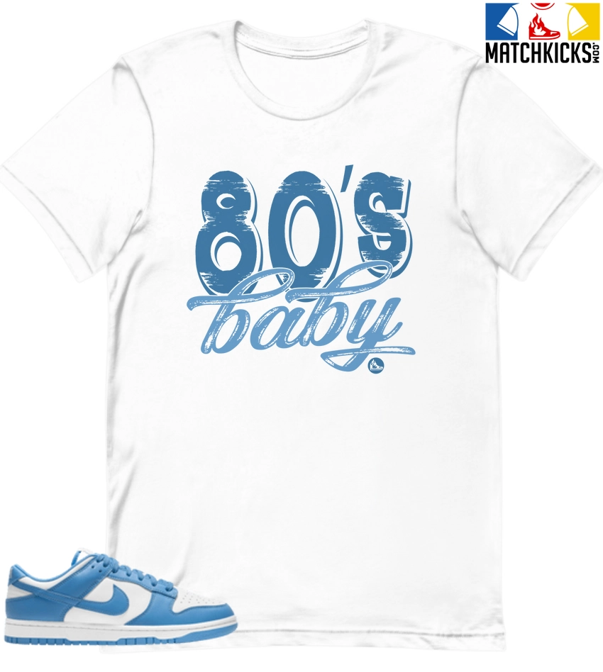 T-Shirt – Nike Dunk Low University Blue – Sneaker-Matching T-Shirt (80s baby) is a high quality sneaker-matching T-Shirt designed to match your Nike Dunk Low University Blue sneakers. – This Tee is designed with the exact colors to match with a premium look and feel. We only use the best materials and inks to produce our merchandise. All sizes are true to size.