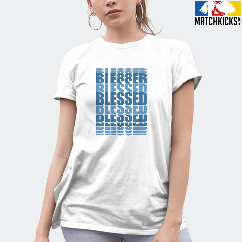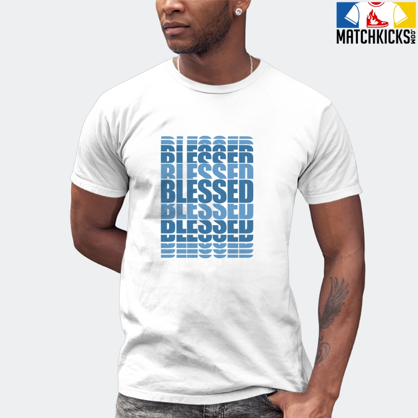 T-Shirt – Nike Dunk Low University Blue – Sneaker-Matching T-Shirt (BLESSED Many Times) is a high quality sneaker-matching T-Shirt designed to match your Nike Dunk Low University Blue sneakers. – This Tee is designed with the exact colors to match with a premium look and feel. We only use the best materials and inks to produce our merchandise. All sizes are true to size.