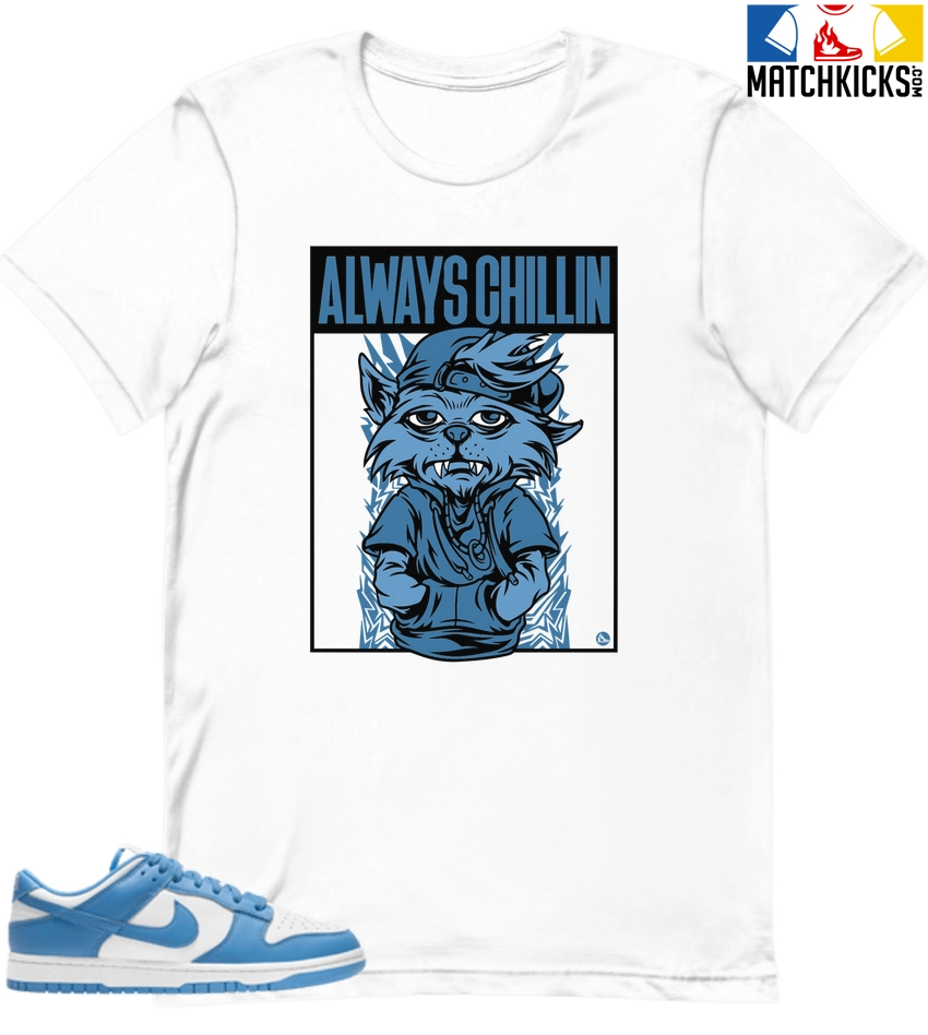 T-Shirt – Nike Dunk Low University Blue – Sneaker-Matching T-Shirt (Cool Cat Always Chillin)