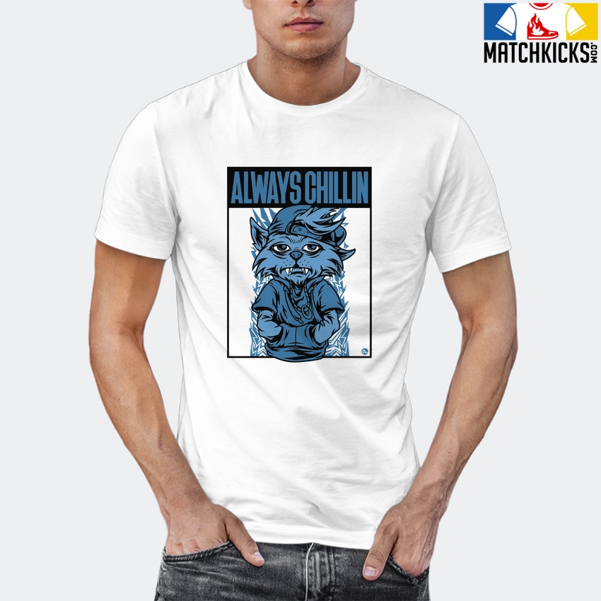 T-Shirt – Nike Dunk Low University Blue – Sneaker-Matching T-Shirt (Cool Cat Always Chillin) is a high quality sneaker-matching T-Shirt designed to match your Nike Dunk Low University Blue sneakers. – This Tee is designed with the exact colors to match with a premium look and feel. We only use the best materials and inks to produce our merchandise. All sizes are true to size.