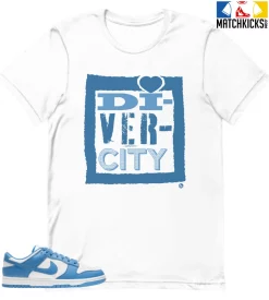 T-Shirt – Nike Dunk Low University Blue – Sneaker-Matching T-Shirt (DIVERCITY) is a high quality sneaker-matching T-Shirt designed to match your Nike Dunk Low University Blue sneakers. – This Tee is designed with the exact colors to match with a premium look and feel. We only use the best materials and inks to produce our merchandise. All sizes are true to size.