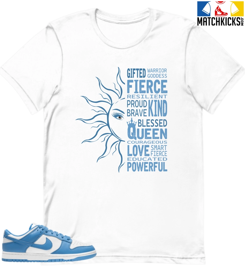 T-Shirt – Nike Dunk Low University Blue – Sneaker-Matching T-Shirt (Empowered) is a high quality sneaker-matching T-Shirt designed to match your Nike Dunk Low University Blue sneakers. – This Tee is designed with the exact colors to match with a premium look and feel. We only use the best materials and inks to produce our merchandise. All sizes are true to size.