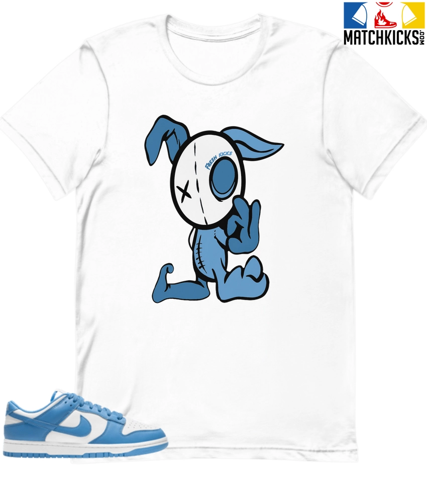 T-Shirt – Nike Dunk Low University Blue – Sneaker-Matching T-Shirt (Fresh Rabbit) is a high quality sneaker-matching T-Shirt designed to match your Nike Dunk Low University Blue sneakers. – This Tee is designed with the exact colors to match with a premium look and feel. We only use the best materials and inks to produce our merchandise. All sizes are true to size.
