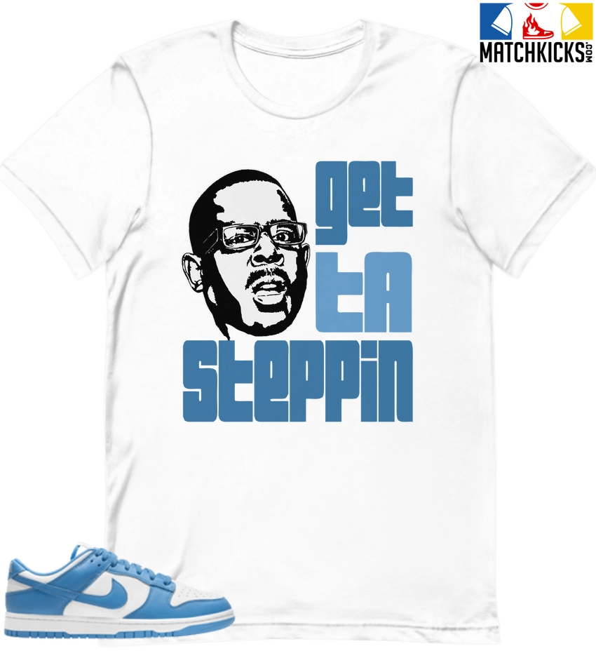 T-Shirt – Nike Dunk Low University Blue – Sneaker-Matching T-Shirt (GET TA STEPPIN with MARTIN) is a high quality sneaker-matching T-Shirt designed to match your Nike Dunk Low University Blue sneakers. – This Tee is designed with the exact colors to match with a premium look and feel. We only use the best materials and inks to produce our merchandise. All sizes are true to size.